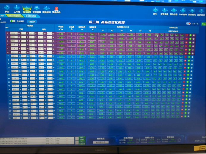 短期和实时尺度泵站优化调度模型依托业务应用系统,已得到了规模化与常态化应用。短期优化调度模型支持“经济、省电、优水质、快速”四种泵站群调度模式,可充分利用峰谷电价结构、在线水库调蓄空间,智能决策各泵站最优运行方案。自2024年8月试运行以来,该模型已累计生成400余套调度方案,直接支撑了珠三角工程泵站群日调度计划编制。实时优化控制模型可结合机组状态评价结果,自动确定泵组最佳运行组合和转速方案,并部署于控制区,与计算机监控系统(SCADA系统)联动实现泵组实时控制。