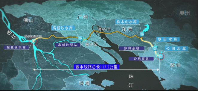 珠三角工程是国务院确定的全国172项节水供水重大水利工程之一,是广东省“五纵五横”水资源配置骨干网络重要组成部分,是广东省已建水资源调配工程中投资额最大、输水线路最长、受水区域最广的工程。工程实现从西江水系向珠三角东部引水,有效解决了广州、深圳、东莞等地生活生产缺水问题,进一步保障粤港澳大湾区供水安全和生态安全。