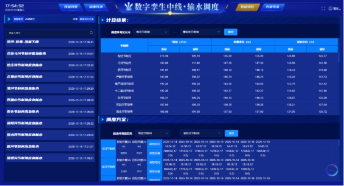 推动全线闸群调控的模型决策:2025年9月15日,入京流量按地方需求进行调整,针对此次典型工况,中线公司利用调度决策模型自动生成全线闸群调度方案,实现了从渠首到北京的调度时间提速50%。调水团队在总调度大厅全程参与了此次调度值班工作,现场检验了决策模型性能。从调整效果看,大部分闸门水位波动平缓,符合预期,验证了数字孪生调度方案的可行性。
