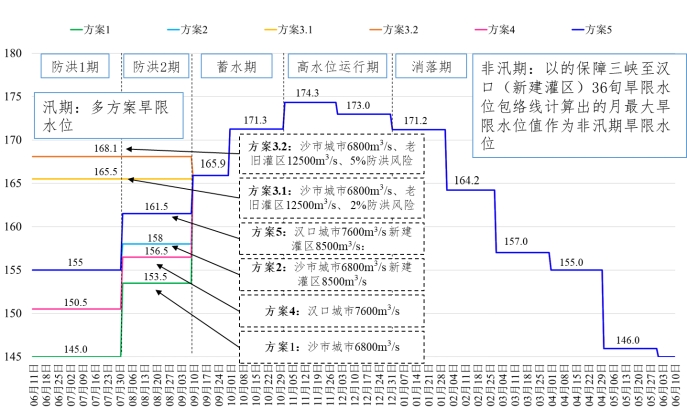 (2)实现了三峡水库旱限水位调度多方案效果、效益和风险量化评估。通过多模型多要素量化推演,识别了旱限水位方案通过汛期抬升水位、非汛期下泄补水出库保障干旱年份用水需求的总体影响,采用“五维三类”指标体现揭示了多方案下供水、发电、航运、生态、防洪的效果、效益和风险变化特征,结合概率预报和调度推演,识别了来水不确定性的综合影响,从旱限水位风险对冲和调度方式反馈优化两个角度提出了风险应对建议。