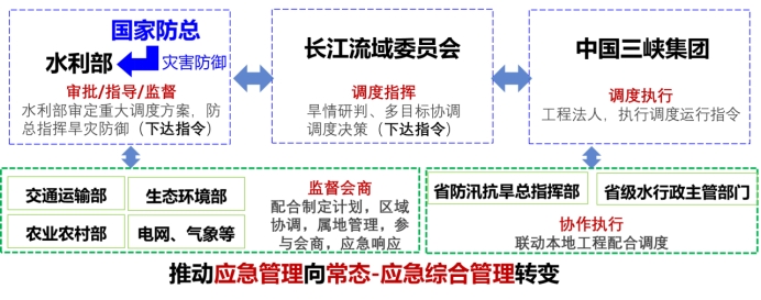 (3)提出了三峡水库旱限水位调度技术和管理决策机制。技术决策方面,确定了调度任务和原则、调度运用参数与指标、水文气象情报与预报、调度控制水位与流量、全年关键决策节点、调度效果评估与优化等方面。管理决策方面,从管理制度、管理体制、管理机制明确了旱限水位调度的管理决策机制,以提升干旱应对的管理效能,增强长江流域“抗大旱、抗长旱”能力。